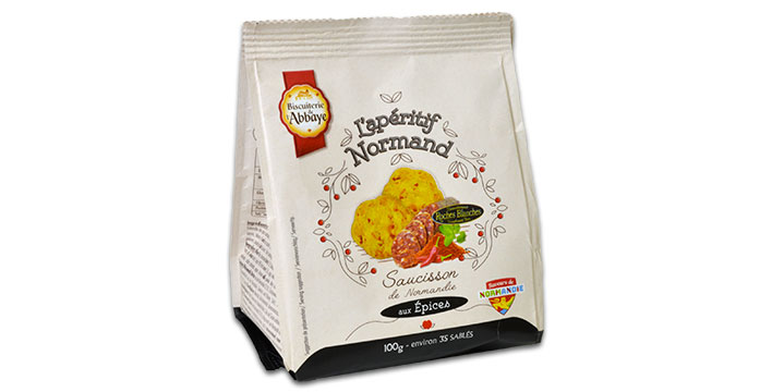 Inspired by expertise perfected over generations of baking pure butter biscuits, the well-known Normandy speciality, the Biscuiterie de l'Abbaye offers savoury pure butter aperitif biscuits, flavoured with Gillot camembert, Isigny mature Mimiolette and Isigny cream/garlic/chive.